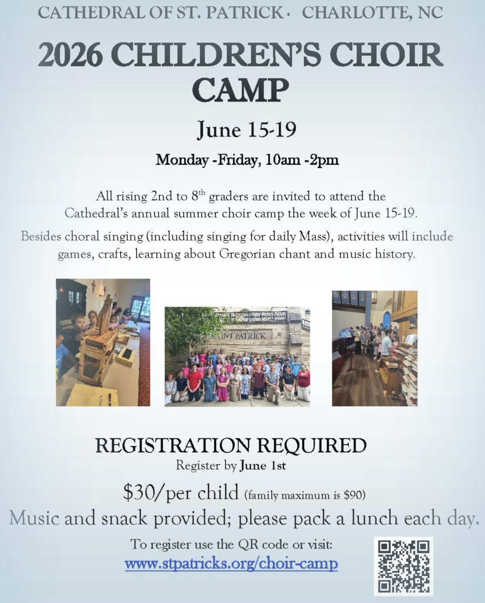 All rising 2nd to 8th grade boys and girls are invited to attend the Cathedral of St. Patrick's annual summer choir camp.