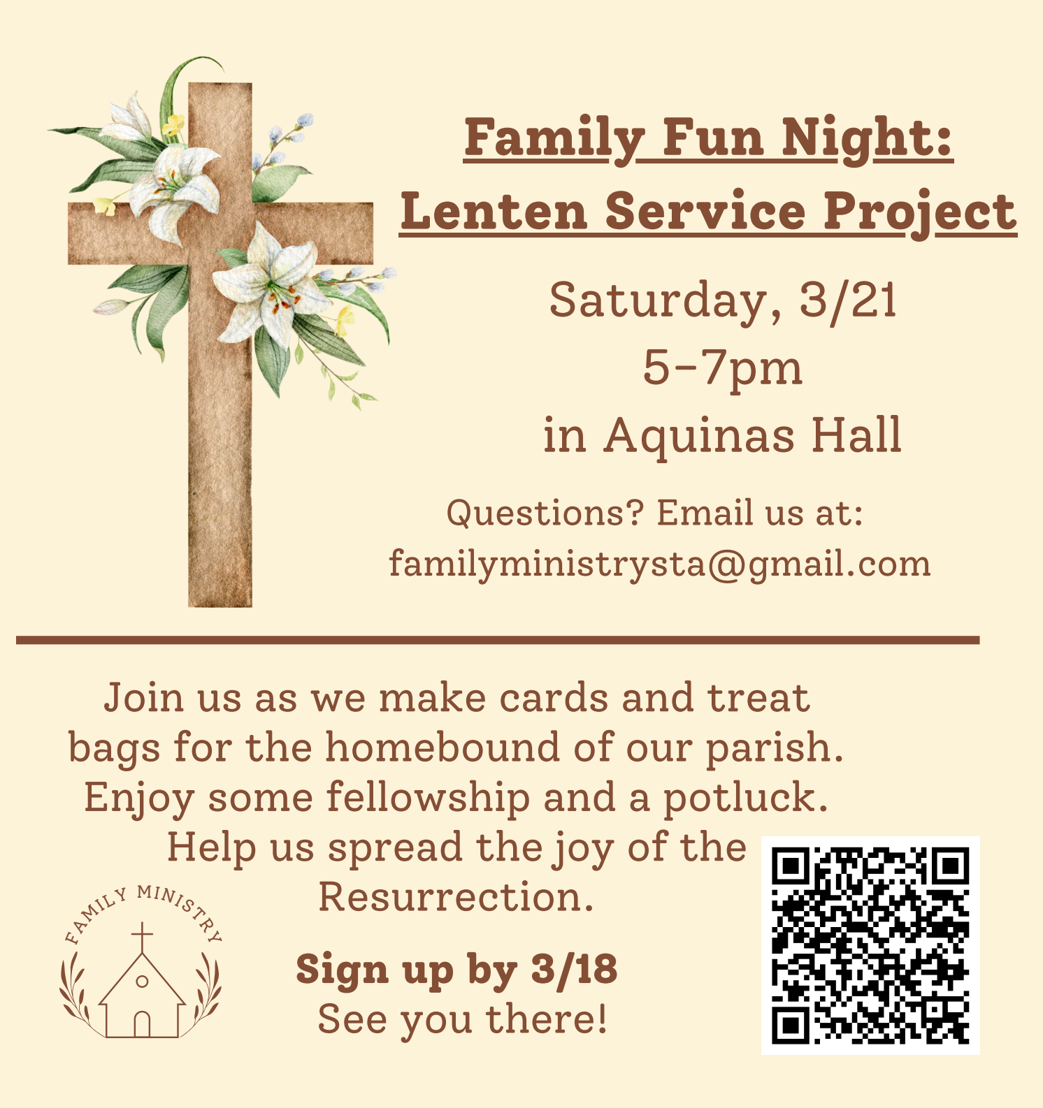 Join other parishioners sharing the Gospel! Questions? Reach out!