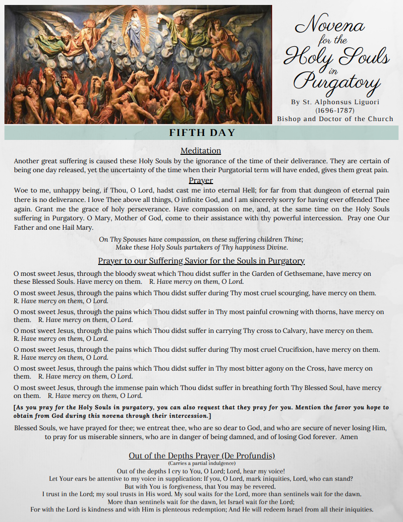 Many people are confused about the what happens after death, and due to their love and attachment for a relative or friend who has passed away, often simply assume they are in a better place, that is to say, Heaven. We simply do not know this, and it is the constant teaching of the Church, and unceasing witness of the saints, that we must continue to pray for those who have died. In order to live in Heaven, one must not only have died in a state of grace, but must also have no attachment to sin, and must also have repaired, or restored what was lost through their sin. This is what Our Lord meant by 'be perfect.' God is pure love, goodness, truth, and beauty. No person can live in His presence in Heaven without being totally purified. This is why Servant of God Fulton J. Sheen said that 'Hell is pain without love, Purgatory is pain with love, and Heaven is love without pain.' The souls who have died, who are still in need of some purification willingly, lovingly embrace this final purification, knowing full well that it will be incredibly painful - more painful than anything they have ever experienced. They do so because they know God, and long to be in His presence forever, and so it is worth it to them.