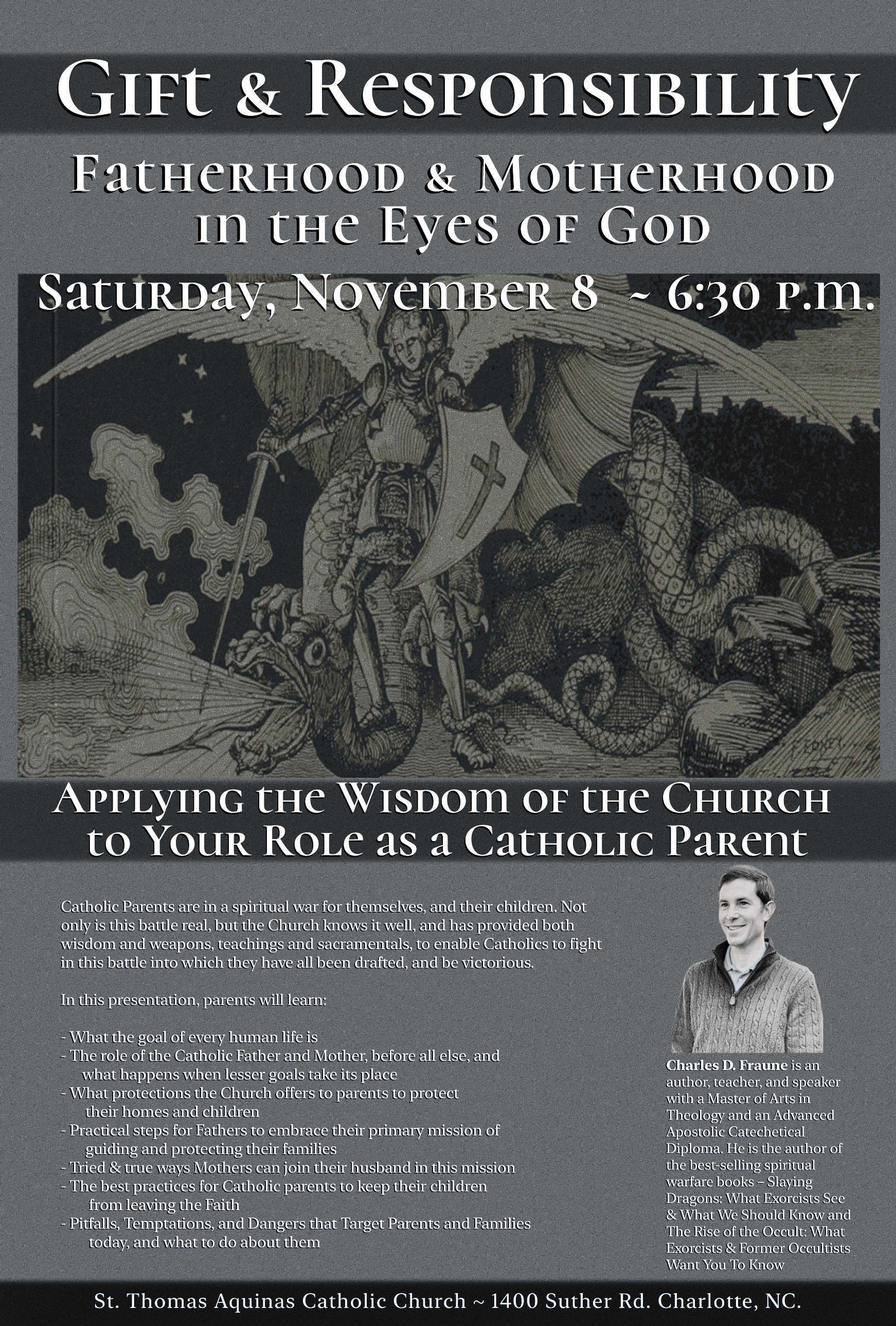 Fathers, in particular, as head of the house and “priests” of the domestic church need to be the pillars of Christian formation for their sons and daughters. They are not just biological progenitors but also the very first “spiritual fathers” for their children. This is a great privilege that they are entrusted with and it cannot be delegated to any other. Wives are to diligently support their husbands in this crucial work and Catholic parishes need to actively aid both parents in their respective roles. Therefore, in regard to Catholic education, the goal of the St. Thomas Aquinas Church clergy and staff is to assist fathers and mothers in understanding, embracing and accomplishing this essential aspect of their vocation.